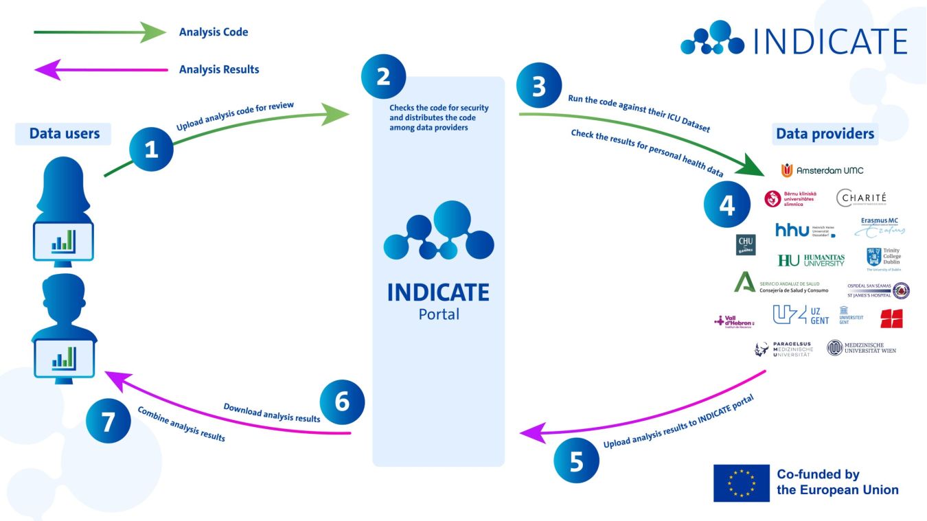 INDICATE’s federated analysis architecture enables data users, such as researchers, innovators, and policy makers, to derive insights from ICU data across multiple institutions, regions, and European countries.